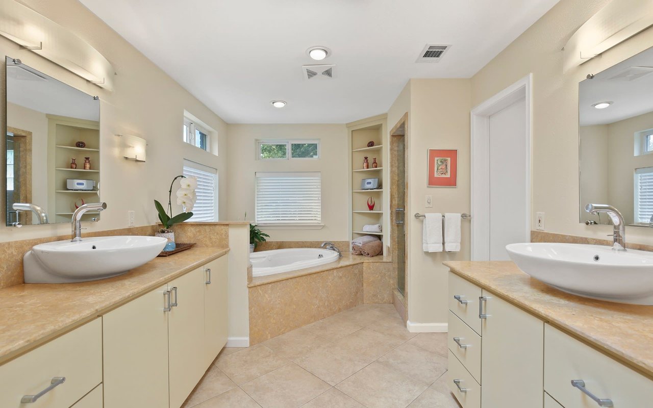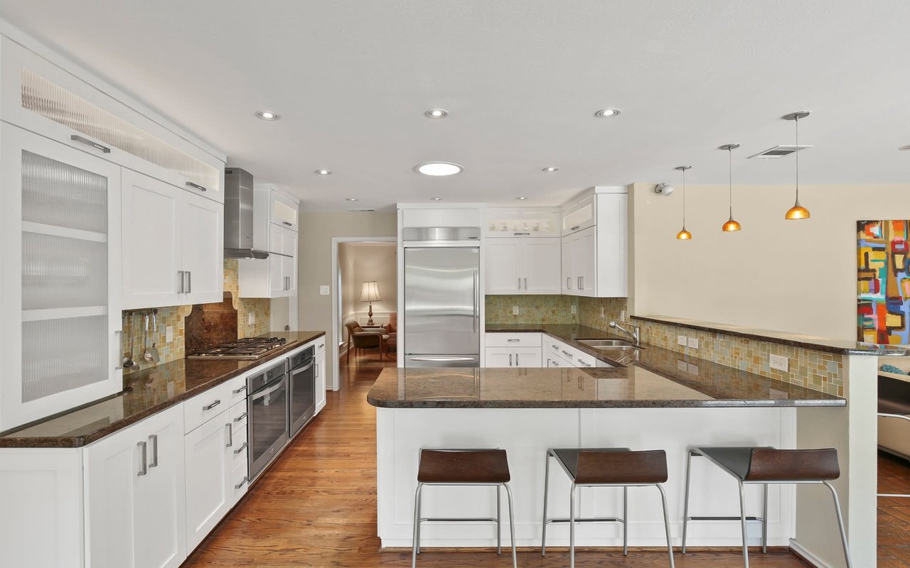 Beautiful remodeled ranch in Northwood Hills with gorgeous drive up and circular drive. This 4 bed, 3 full bath transitional features refinished hardwoods, open kitchen, oversized breakfast area and 3 large living spaces (living, family room, game room) - perfect for the busy, growing family. Spacious, open master bedroom boasts patio access, separate his and her walk-in closets, dual vanities, tub and separate oversized shower. Yard-facing glass doors flow to a meticulously-landscaped backyard oasis, capturing natural light & making indoor-outdoor entertaining a breeze. Kitchen has built-in refrigerator and walk-in pantry. Walk in wine cellar. New paint, new can lights in dining room. New roof 2019!