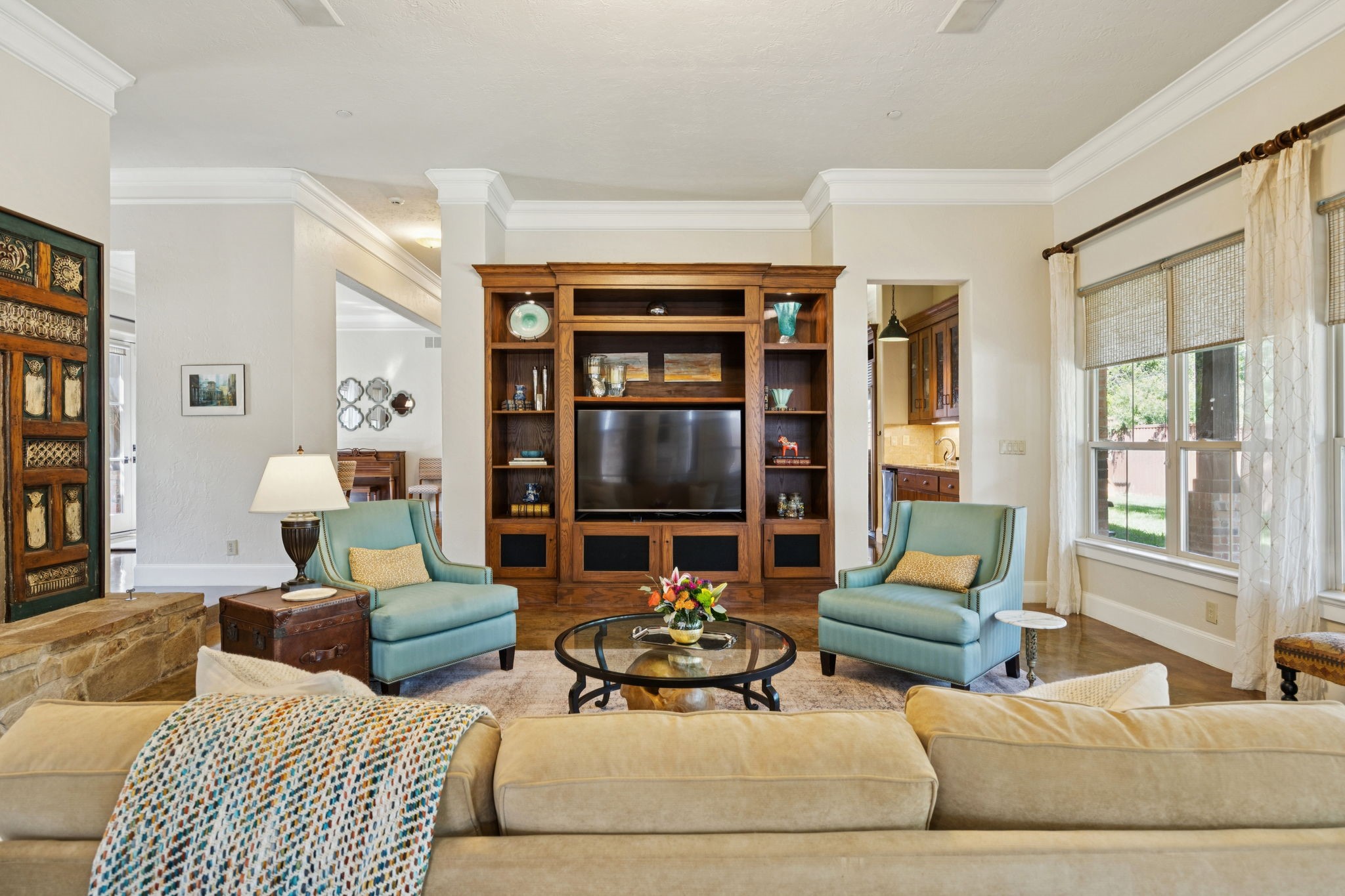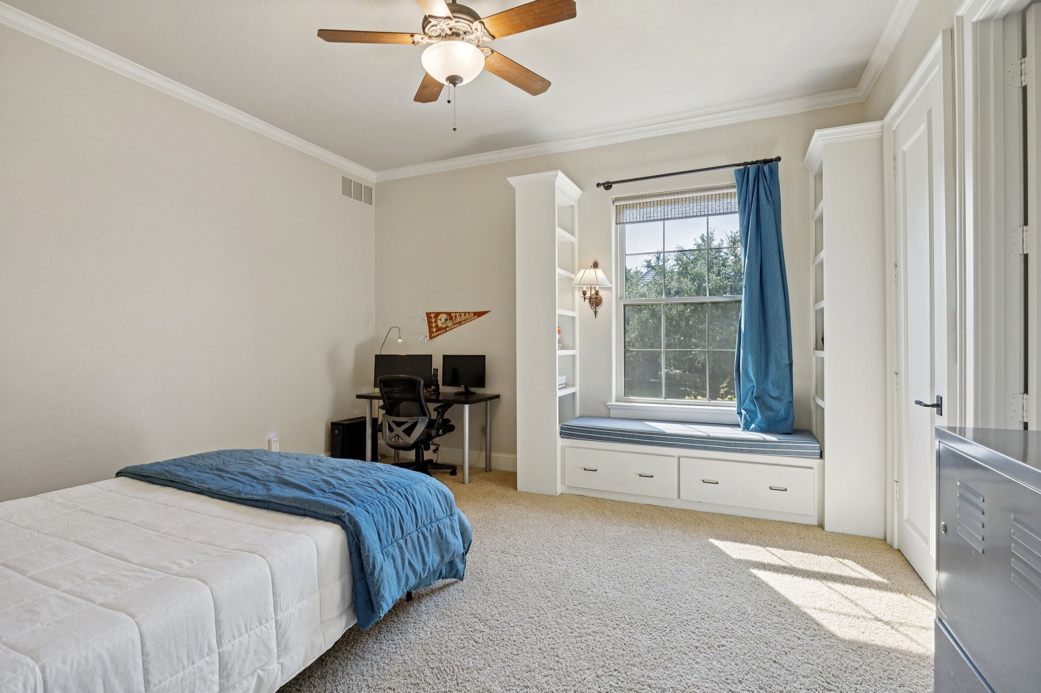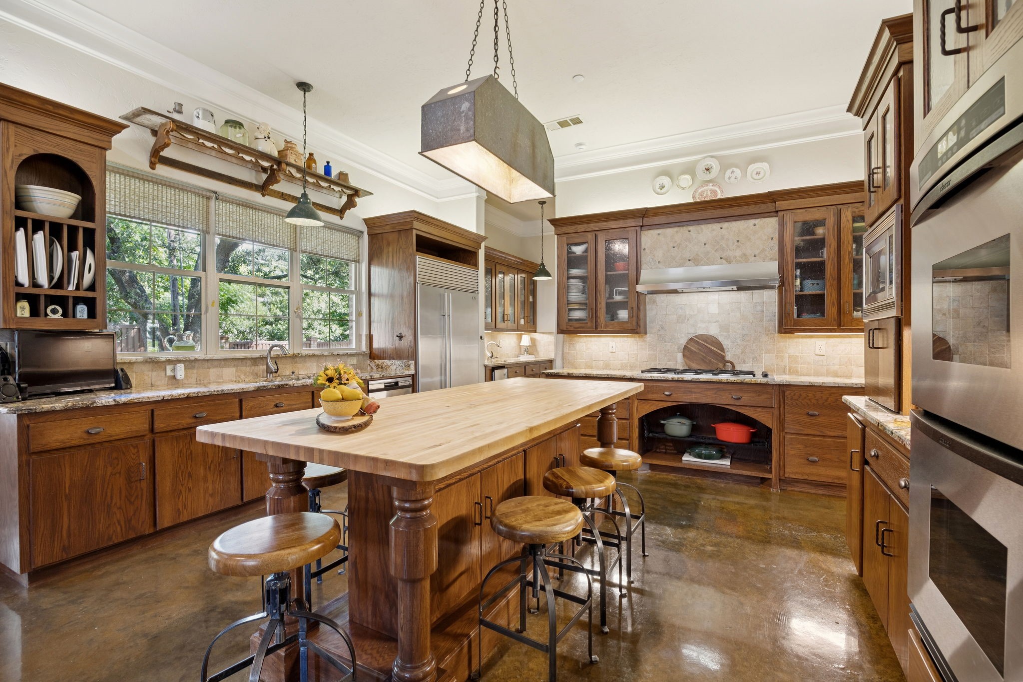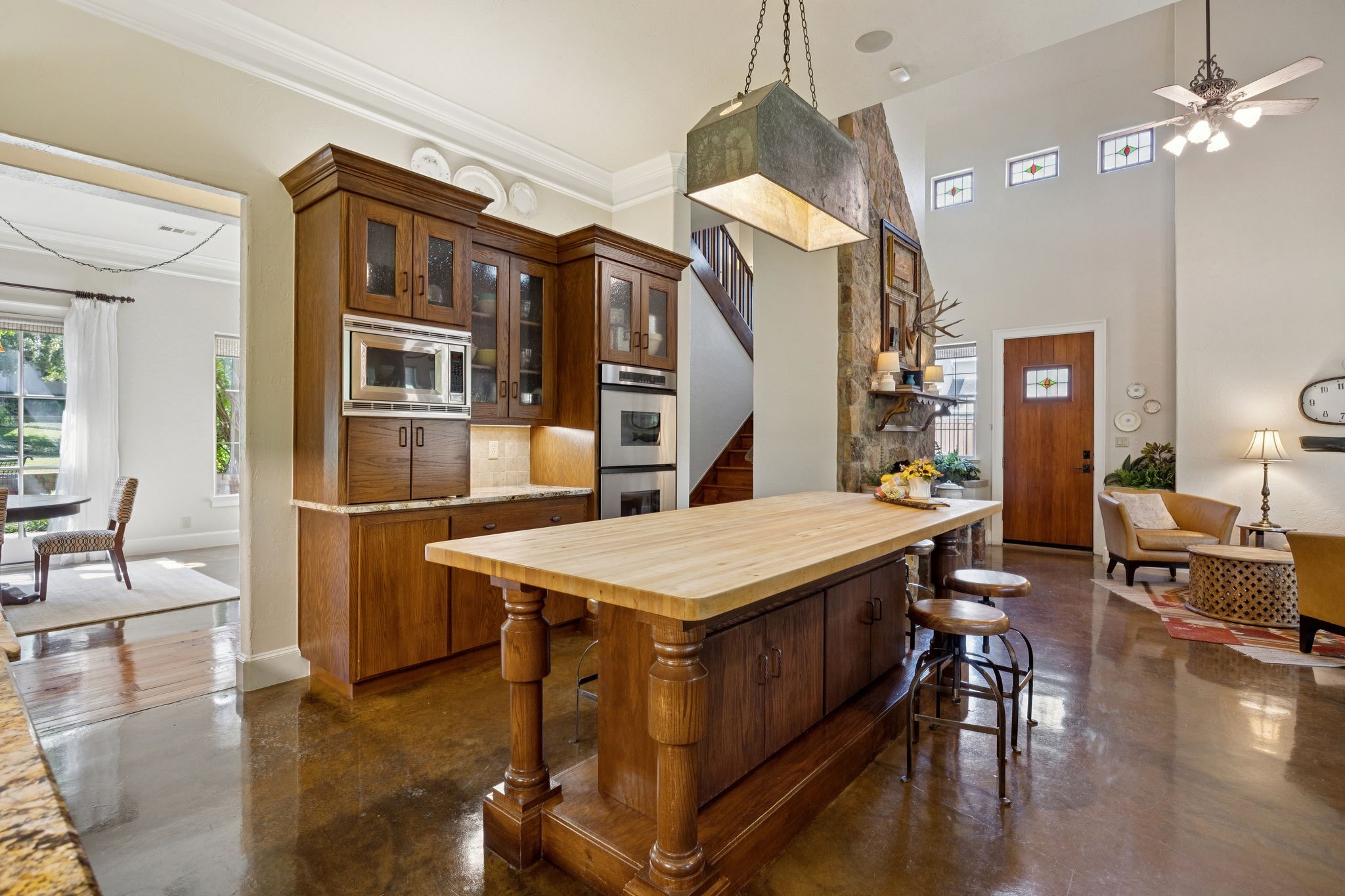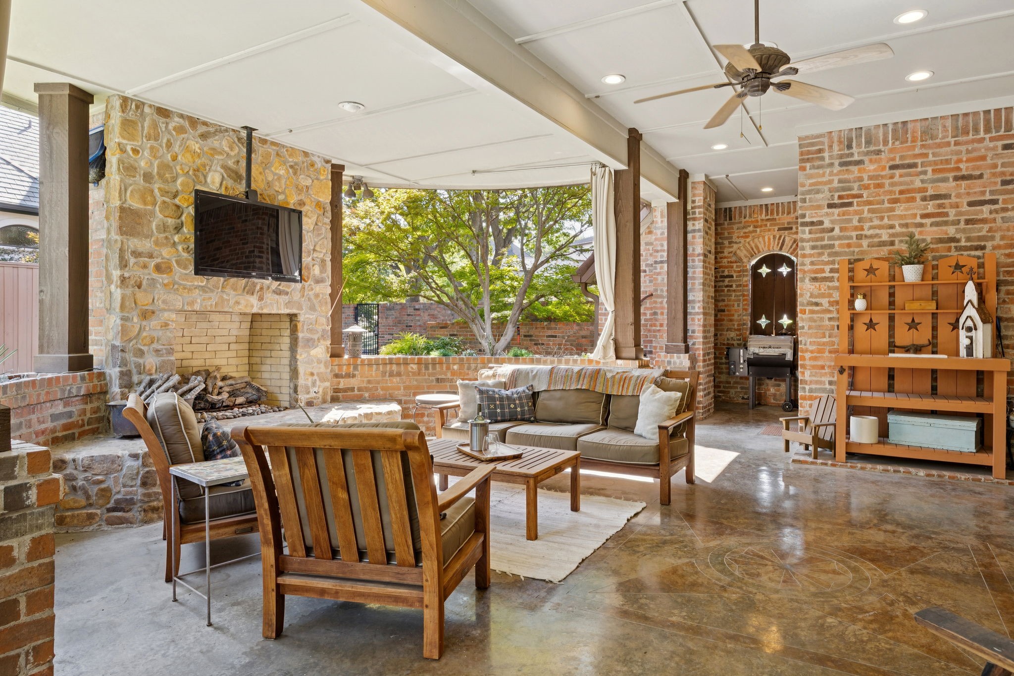 Welcome to Bellbrook Estates, where timeless elegance meets resort style living with ADDISON CITY AMENITIES! Perfectly situated on a lush half acre lot in one of Addison's most coveted neighborhoods. Blending classic architectural design with modern livability, this home offers an exceptional layout for both everyday living and grand entertaining. Step inside to find soaring ceilings, polished concrete floors, and sun drenched living spaces. The spacious living room is a true showpiece, featuring a dramatic wall of custom built-ins, a cozy fireplace, and expansive windows that frame the backyard oasis. The formal dining room flows seamlessly into the heart of the home, while the private study offers a refined space for work or reading. The gourmet kitchen is beautifully designed with custom wood cabinetry, premium appliances, a generous center island opening effortlessly into a keeping room with vaulted ceilings and second fireplace, perfect for casual gatherings. ALL BEDROOMS UP-The primary suite features a sitting area and views of the backyard, with three additional bedrooms offering builtins, and ample closet space. Don't miss the amazing outdoor loggias perfect for morning coffee or dinner on a cool evening, with views of sparkling water from the pool! Additional features include three car garage, utility, and storm cellar!